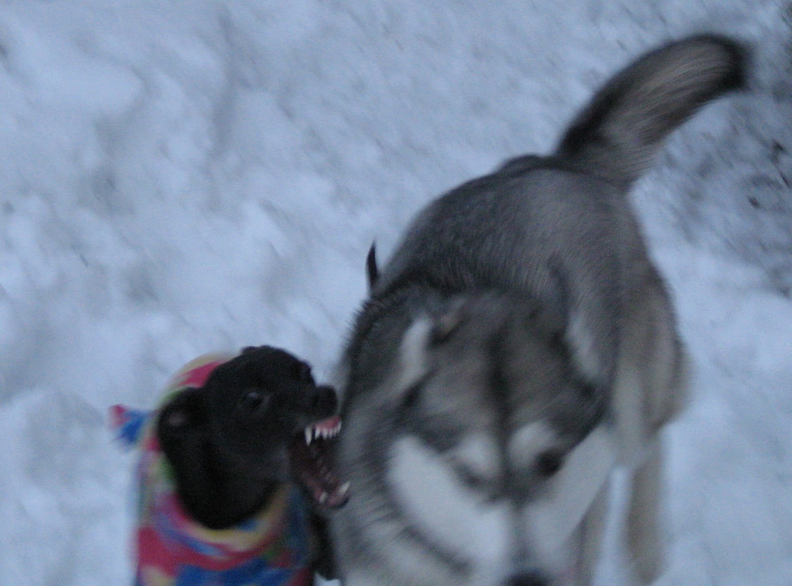 ^ Ratkaisu susiongelmiin? Huskien kanssa treenattu whippetti? Ei tule meinaa isommatkaan ryttyilemään Vampille.
